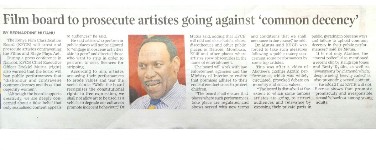 KFCB to Prosecute Artiste Going Against Common Decency / 22 February 2019 / 0 Comments Submitted by admin on 22 February 2019