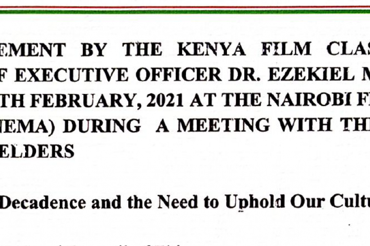 Press Statement by KFCB CEO Dr. Ezekiel Mutua, Mbs, Issued on 12 Th February, 2021 at Nairobi Cinema