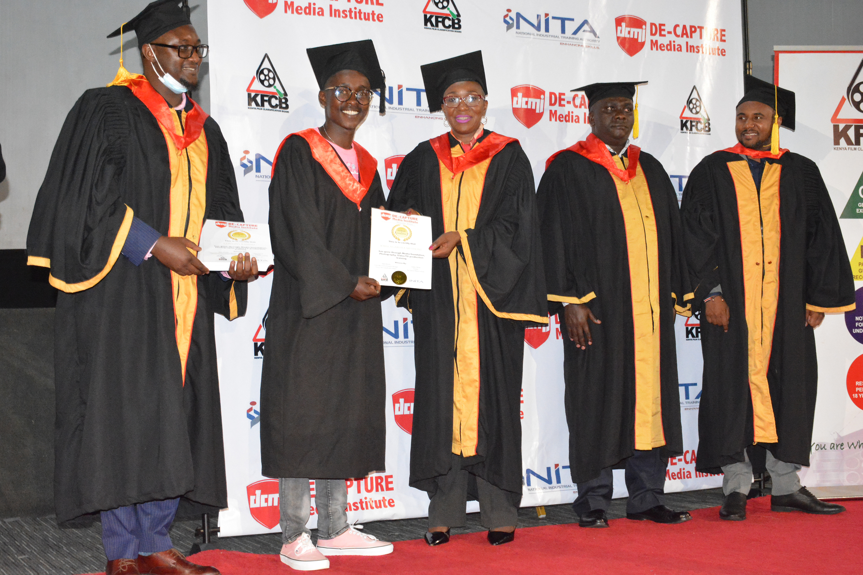The Kenya Film Classification Board Corporate Communications Manager, Ms. Nelly Muluka, presided over the 4th De-Capture Media Institute Graduation Ceremony at the Nairobi Film Centre (formerly known as Nairobi Cinema) on behalf of the Board's Ag. CEO Mr. Christopher Wambua.