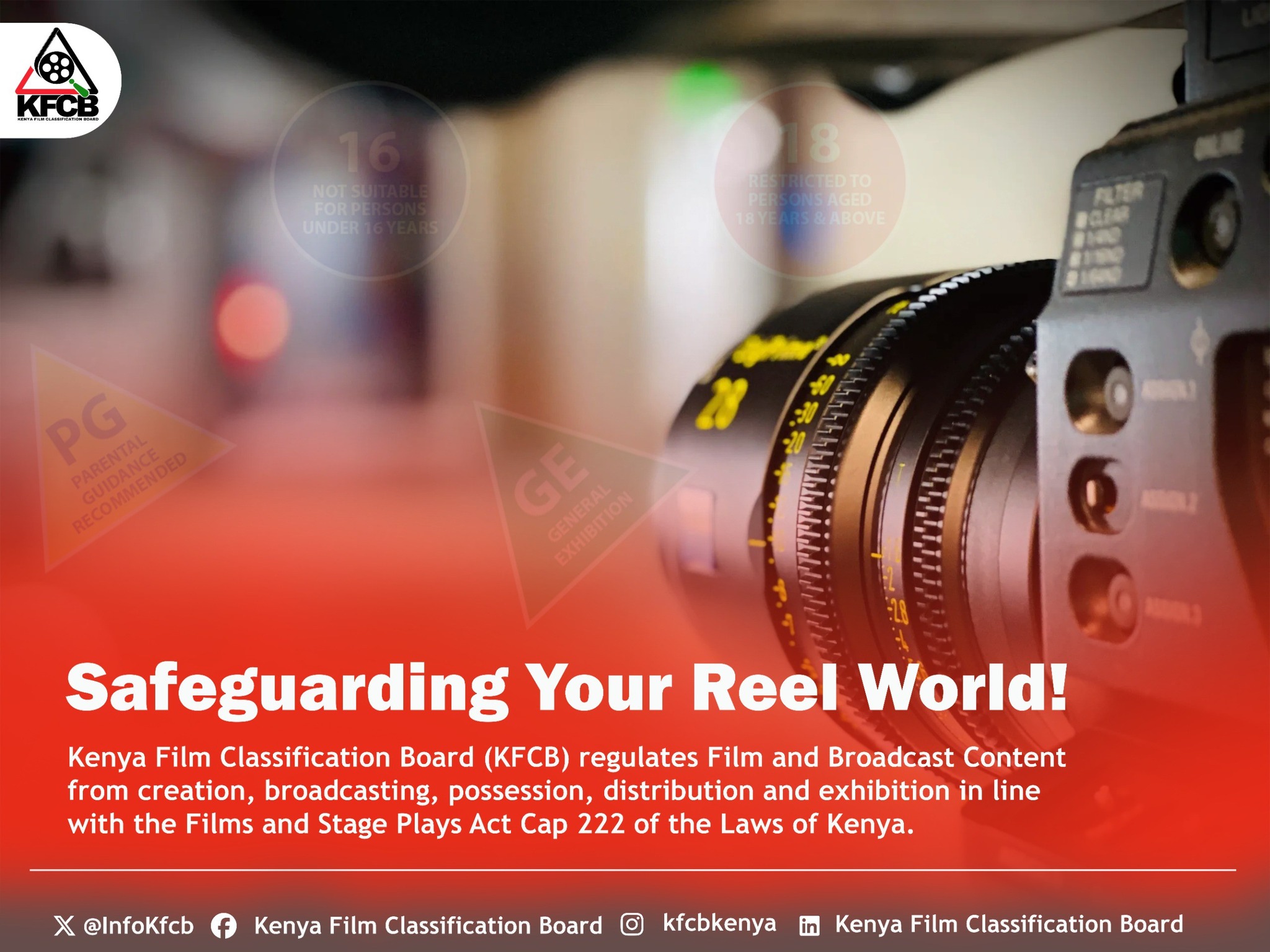 Are you a filmmaker, film agent, distributor, or exhibitor? Are you aware of the Films and Stage Plays Act, Cap 222 of the Laws of Kenya? Cap 222 empowers the Kenya Film Classification Board (KFCB) to regulate Film and Broadcast content through the following: