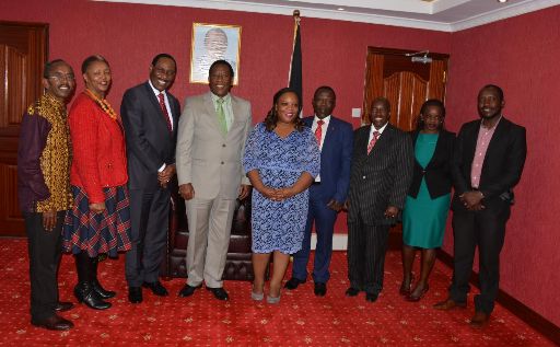 KFCB CEO Dr. Ezekiel Mutua MBS, this afternoon led the KFCB management in meeting the officials of the Evangelical Alliance of Kenya – EAK– led by Chairman Bishop Mark Kariuki and Secretary General Connie Kivuti W. The agenda was partnership in the push for moral values through the Alliance’s A-WATU Initiative.